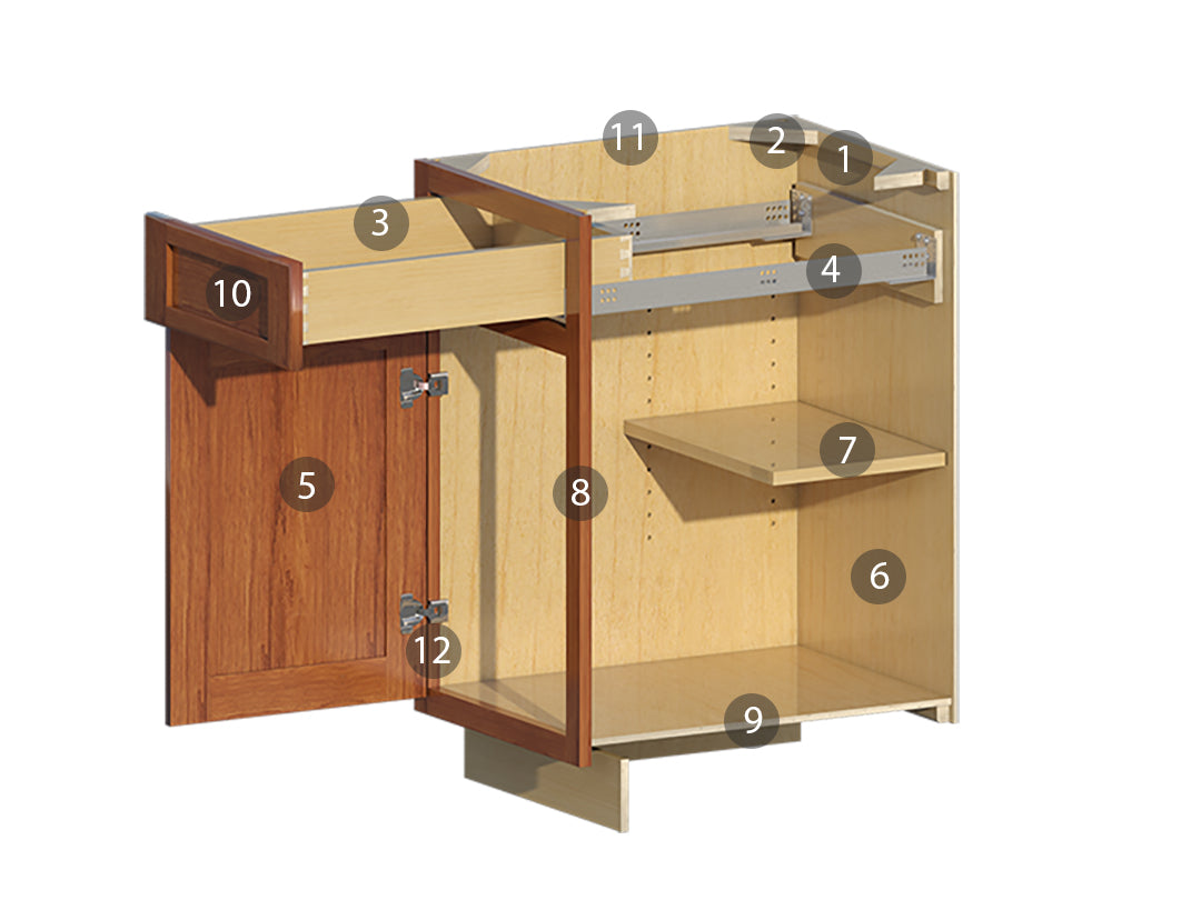 1. 5/8" hardwood dovetail drawer box standard